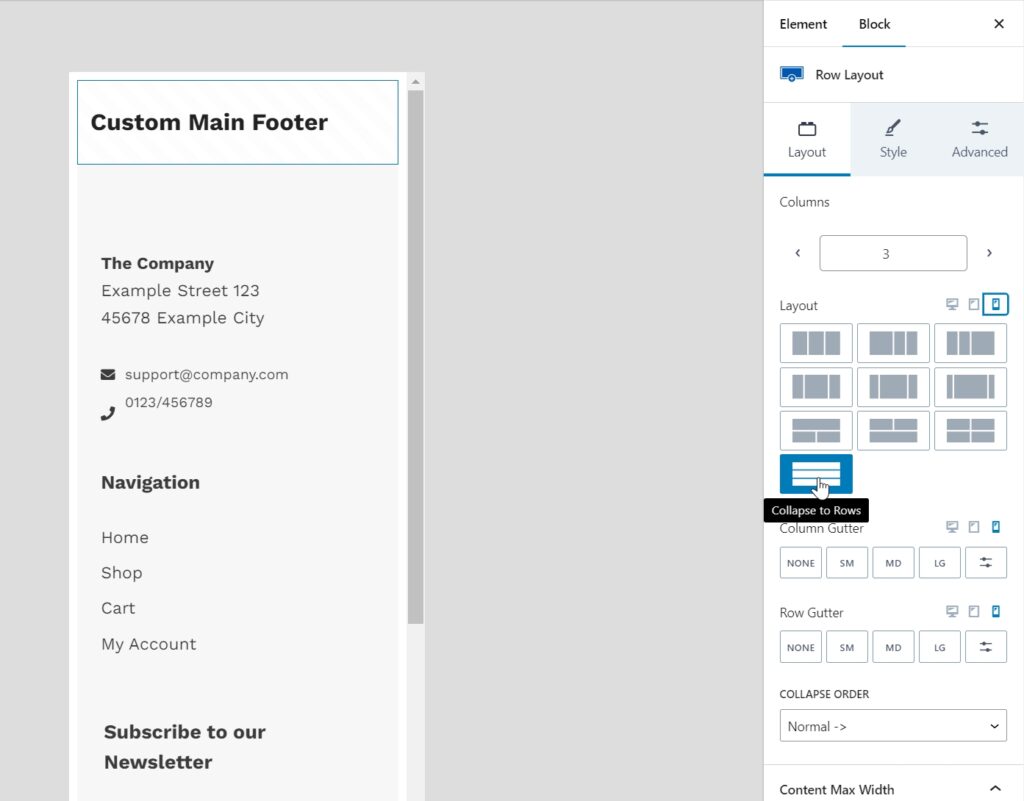 - Preview your footer on different device sizes