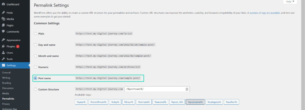 Change Permalink Structure
