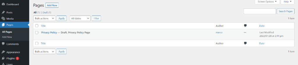 The example page under Pages > All Pages is a privacy page that is always needed.
