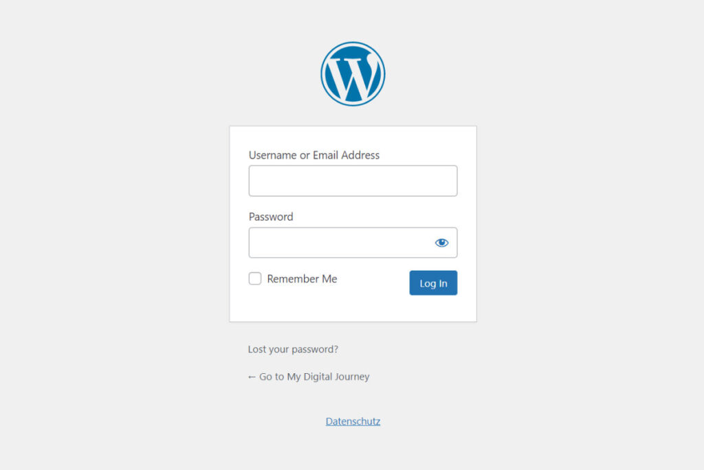 To get to the WordPress user interface – also called WordPress dashboard or WordPress backend – enter /wp-admin after your domain name in the address bar of your browser. It will look like this: your-domain.com/wp-admin.
