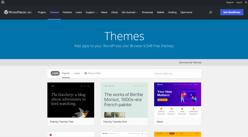 Alternatively you can find the complete directory on wordpress.org under the menu item Themes.